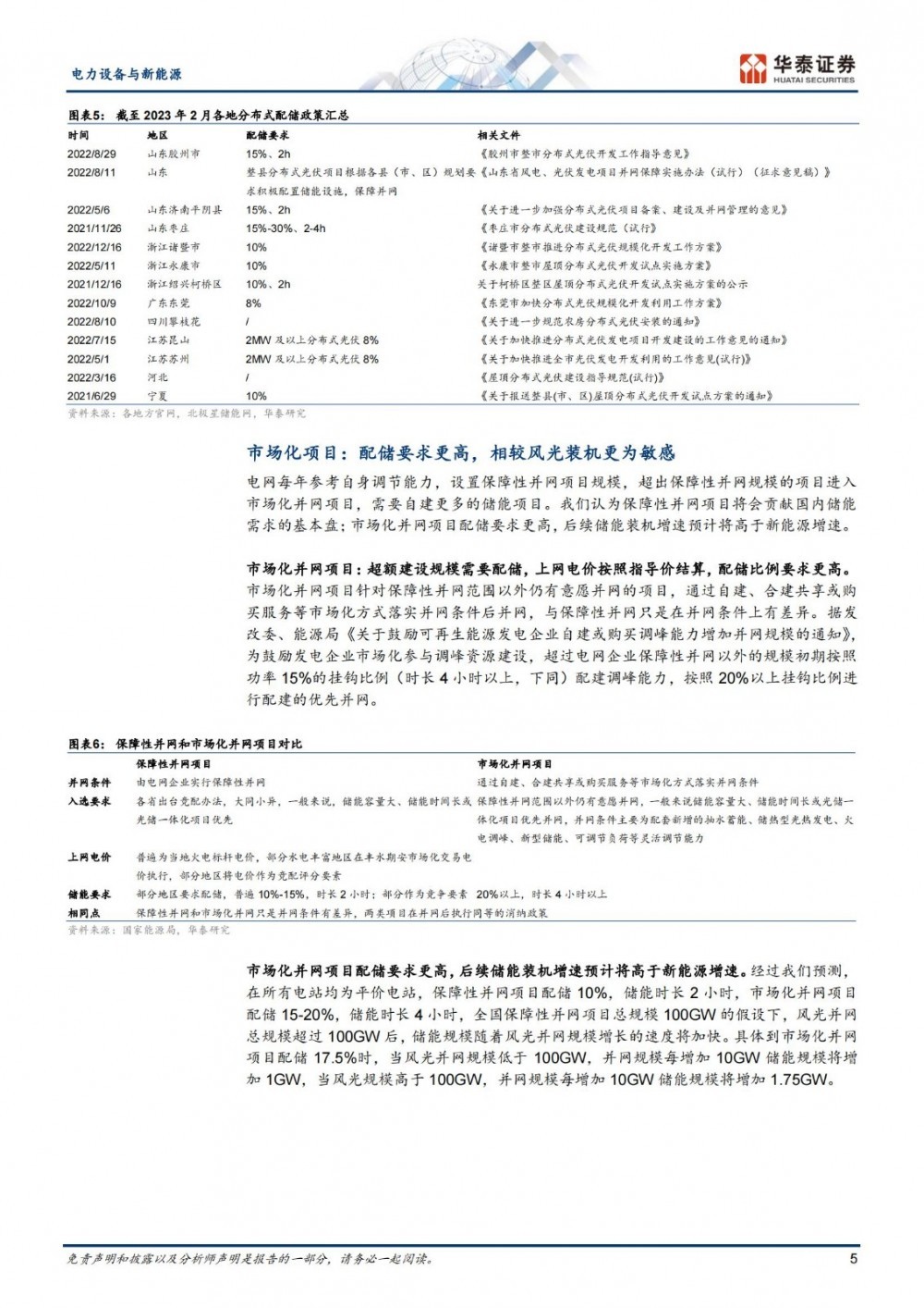 保障性并网项目贡献国内储能需求的基本盘,据我们����� �������Ƴ������������ �������Ƴ������统计,截至23年1月已有2����� �������Ƴ������������ �������Ƴ������������ �������Ƴ����������� �������Ƴ�������8个省份/自治区发布了配储政策,����� �������Ƴ������������ �������Ƴ�������多省分布式光伏也要求配备储能。市场化项目����� �������Ƴ������������ �������Ƴ����������� �������Ƴ�������对配储要求更高,相较风光装机更为敏����� �������Ƴ������������ �������Ƴ�������感,或将带来新增量。此外,硅����� �������Ƴ������������ �������Ƴ�������料价格进入下降通道,平均����� �������Ƴ������������ �������Ƴ������������ �������Ƴ������������ �������Ƴ�������配储比例要求更高的集中式大基地需求受益����� �������Ƴ������������ �������Ƴ�������明显。叠加火电占比下降,火电机组退役带来更多����� �������Ƴ������������ �������Ƴ������������ �������Ƴ������������ �������Ƴ�������的电化学储能需求。国内2����� �������Ƴ������������ �������Ƴ������������ �������Ƴ����������� �������Ƴ�������2年新增规划在建的新型储能项目达����� �������Ƴ������������ �������Ƴ�������101.8GW/259.2GWh����� �������Ƴ������������ �������Ƴ����������� �������Ƴ����������� �������Ƴ�������,我们预计23年新增装机规����� �������Ƴ������������ �������Ƴ������������ �������Ƴ������������ �������Ƴ�������模或达17.9GW/41.1GWh,增速����� �������Ƴ������������ �������Ƴ�������达到158.8%/168.4%,预计23����� �������Ƴ����������� �������Ƴ������-25年CAGR或达93.0%(GW)/����� �������Ƴ������������ �������Ƴ������������ �������Ƴ������������ �������Ƴ�������103.5%(GWh)。